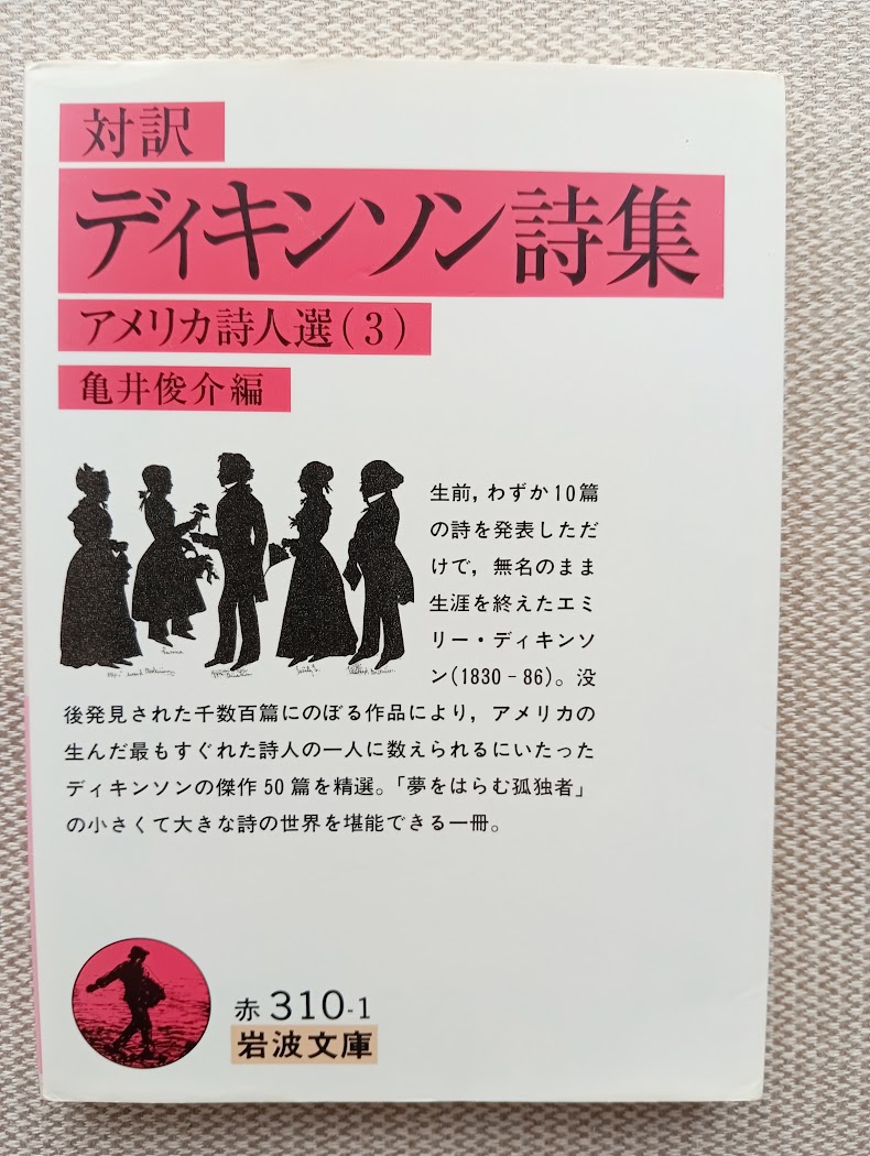 1830年、アメリカのマサチューセッツ州、アマーストで、町の名士の娘として生まれた女性詩人、エミリー・ディキンソンの詩集です。彼女は生前は数編の詩を発表しただけでしたが、死後、千数百編もの詩が発見されました。